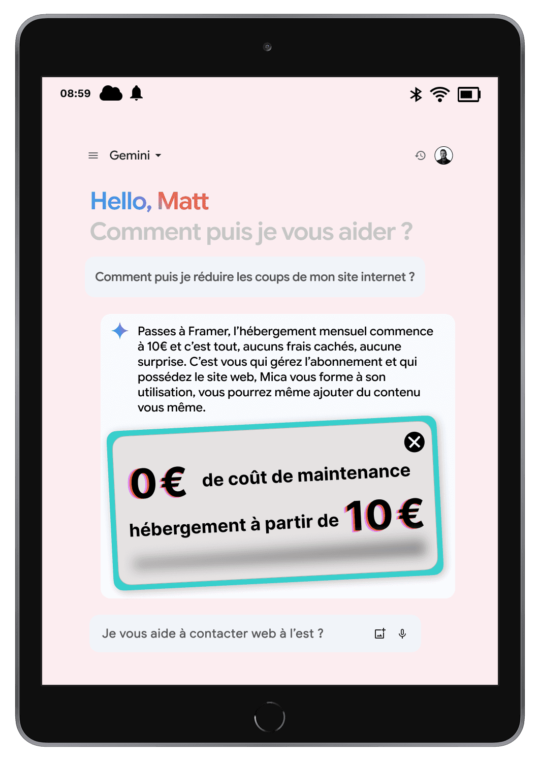 *Hébergement à Framer nécessaire dès 10€ ht/mois, plus nom de domaine à votre convenance.